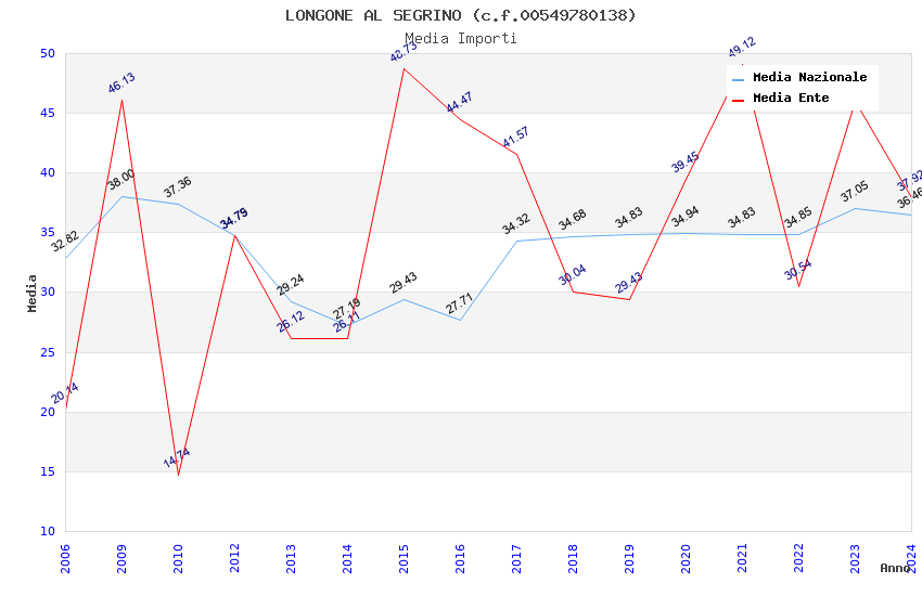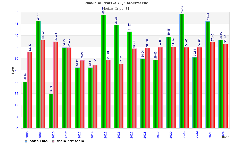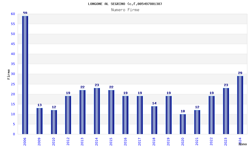 | Anno | Firme | Importi | Media | Naz. | Reg. | Prov. | Comu. |