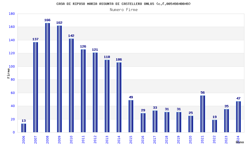 | Anno | Firme | Importi | Media | Naz. | Reg. | Prov. | Comu. |
