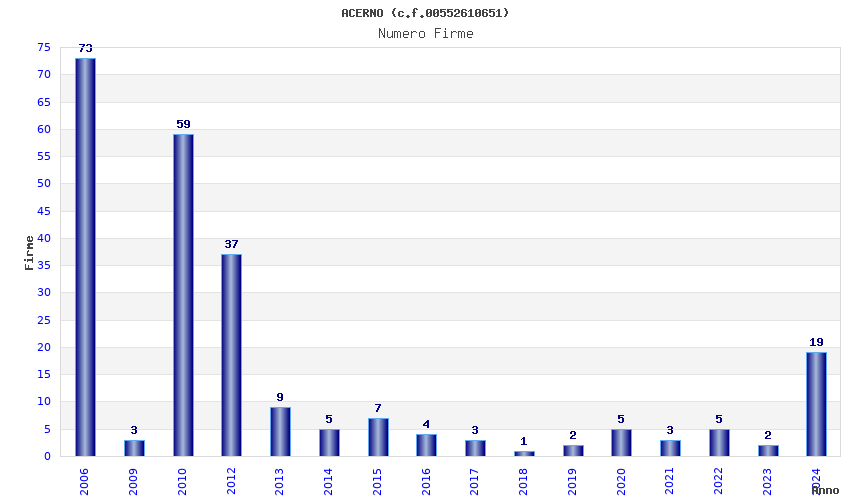 Anno Firme Importi Media Naz. Reg. Prov. Comu.