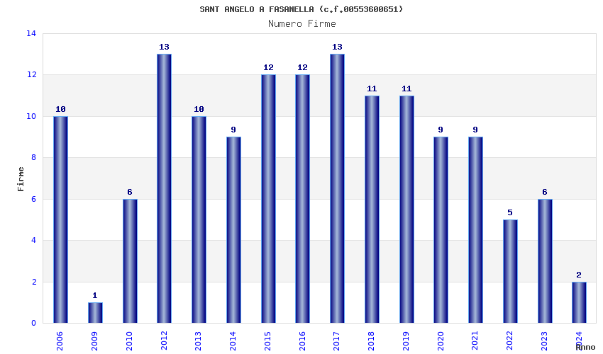 | Anno | Firme | Importi | Media | Naz. | Reg. | Prov. | Comu. |