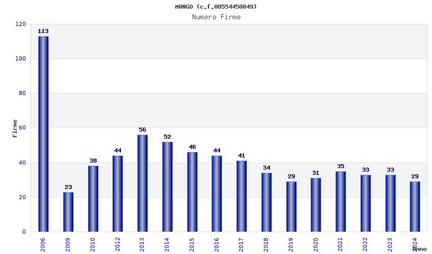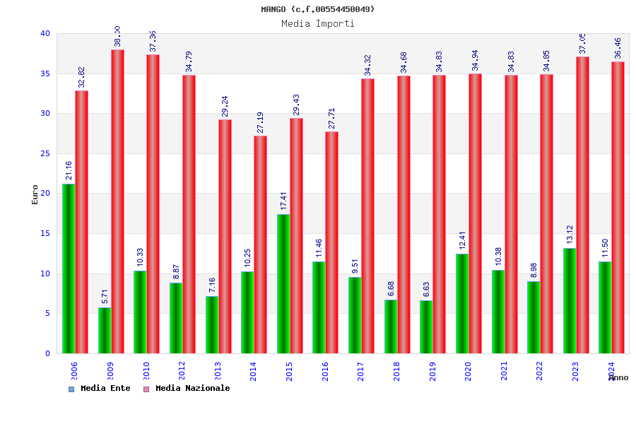 | Anno | Firme | Importi | Media | Naz. | Reg. | Prov. | Comu. |