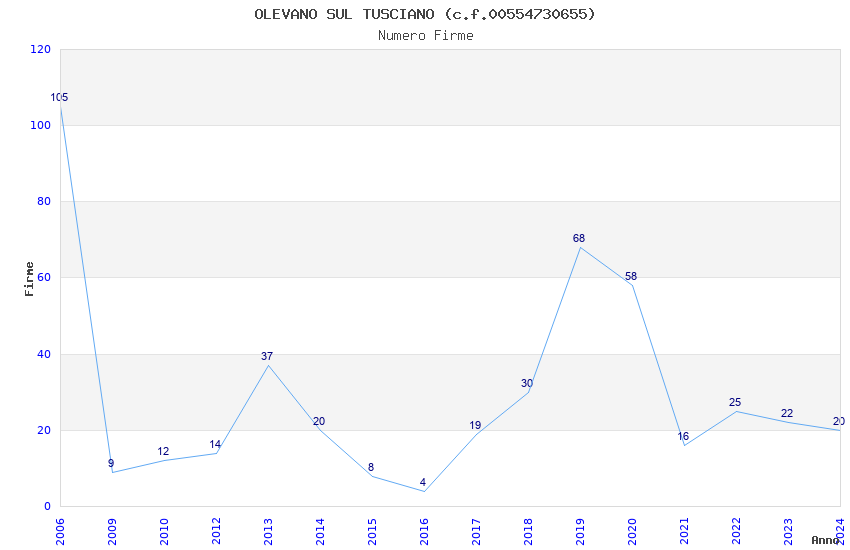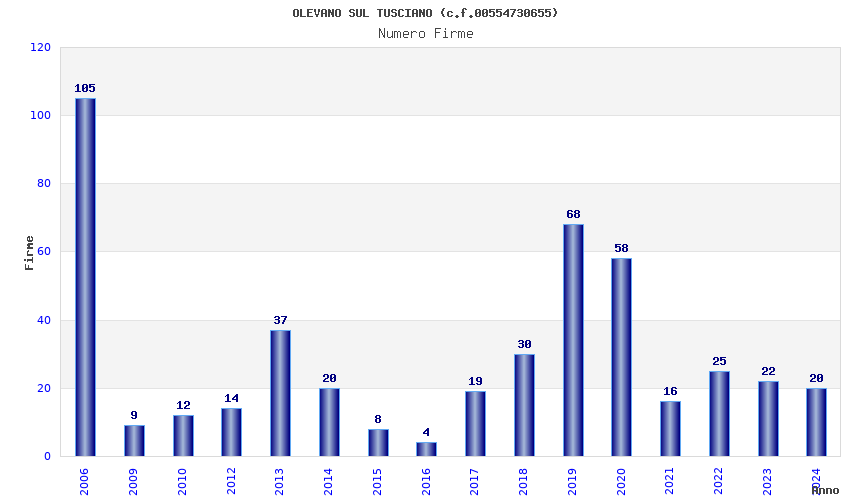 | Anno | Firme | Importi | Media | Naz. | Reg. | Prov. | Comu. |