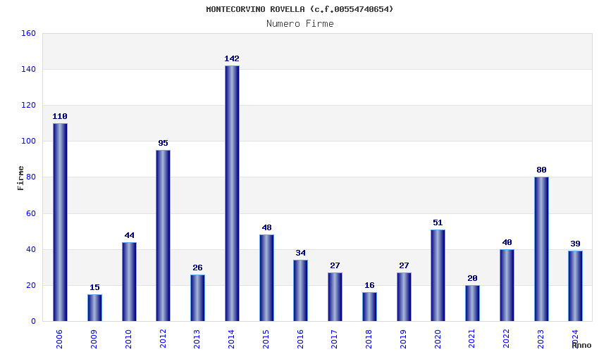 | Anno | Firme | Importi | Media | Naz. | Reg. | Prov. | Comu. |