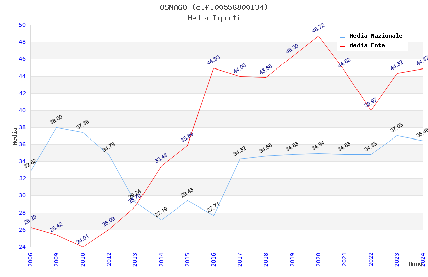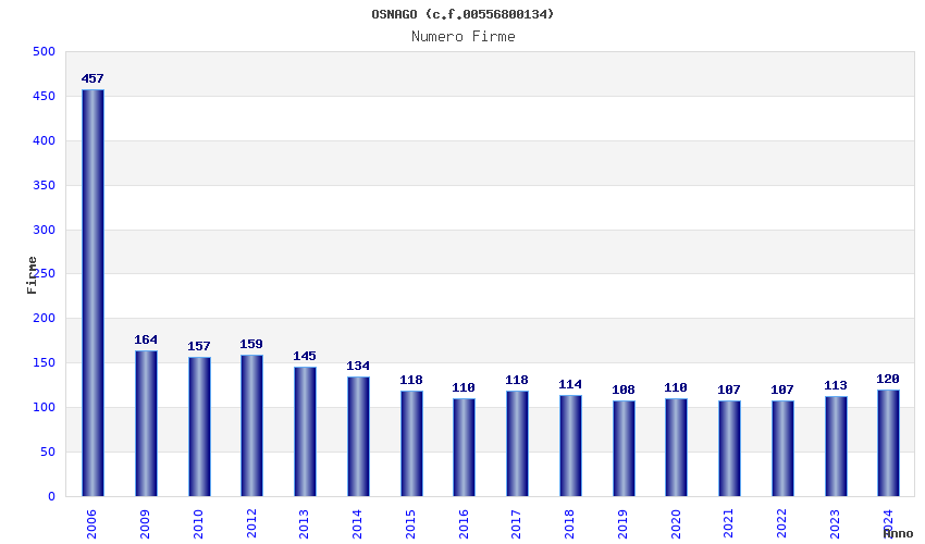 | Anno | Firme | Importi | Media | Naz. | Reg. | Prov. | Comu. |