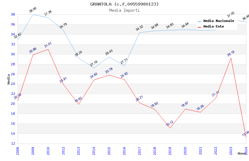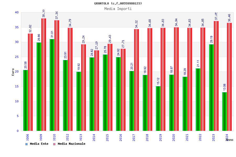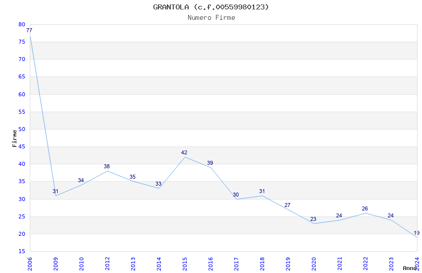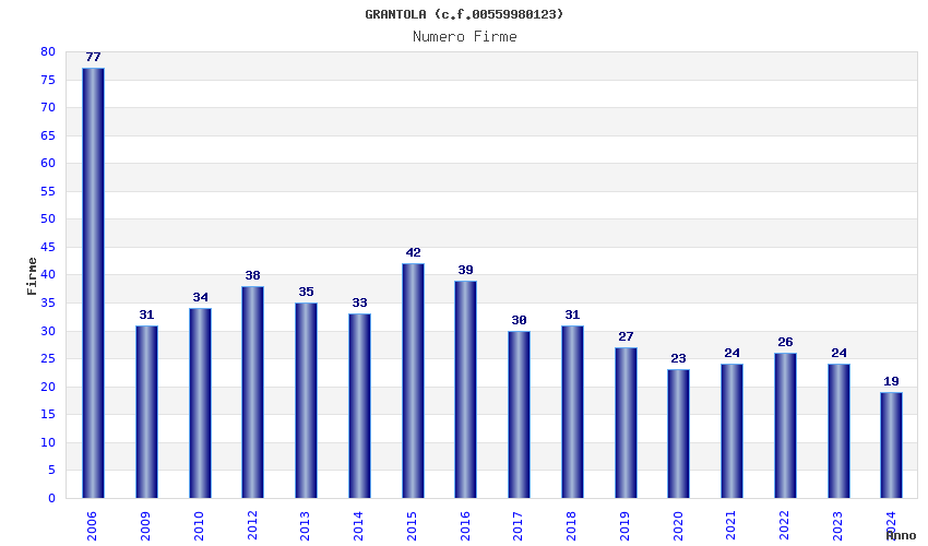 | Anno | Firme | Importi | Media | Naz. | Reg. | Prov. | Comu. |
