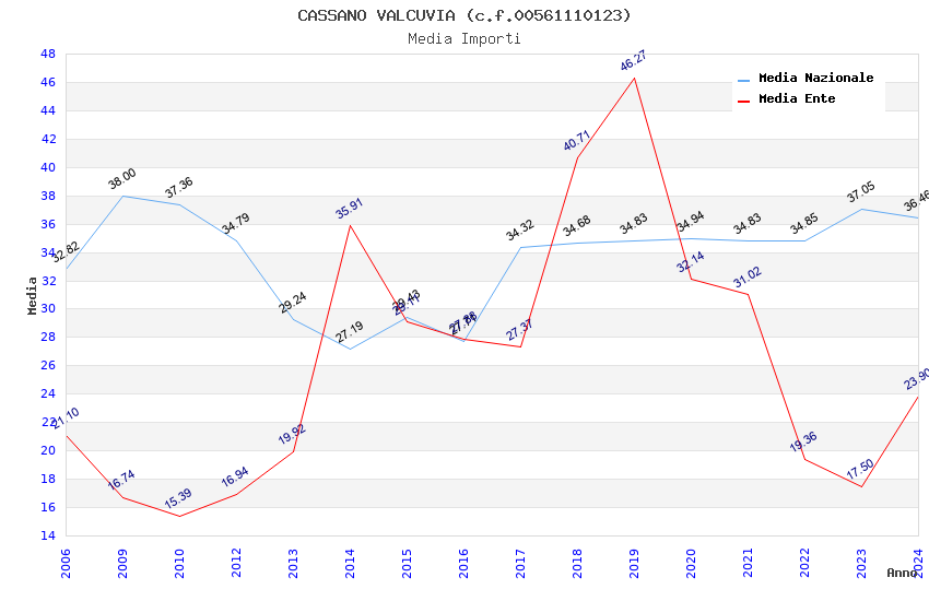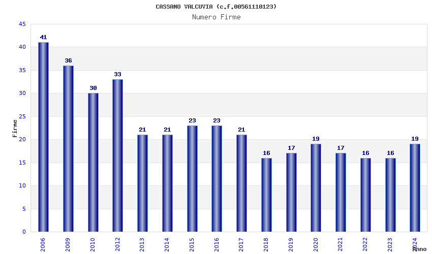 | Anno | Firme | Importi | Media | Naz. | Reg. | Prov. | Comu. |