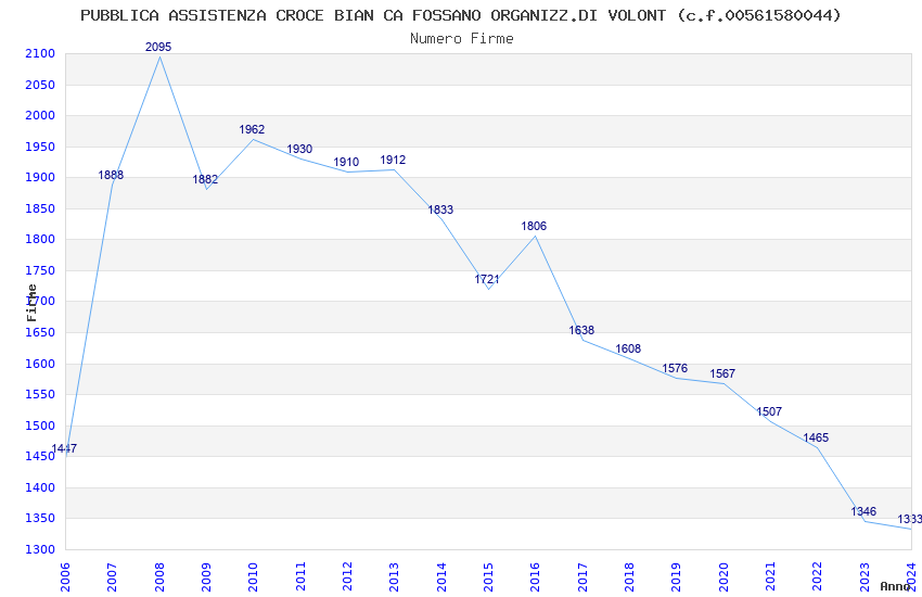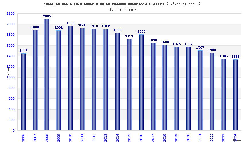 | Anno | Firme | Importi | Media | Naz. | Reg. | Prov. | Comu. |