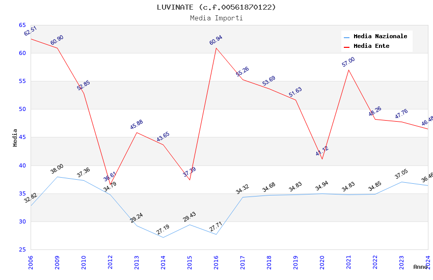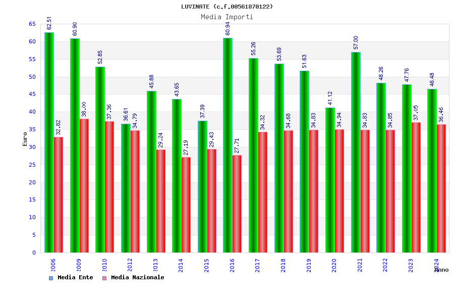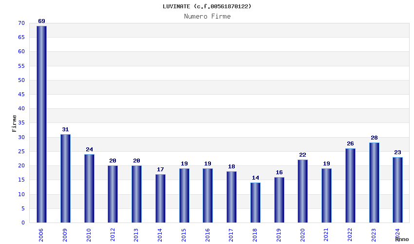 | Anno | Firme | Importi | Media | Naz. | Reg. | Prov. | Comu. |