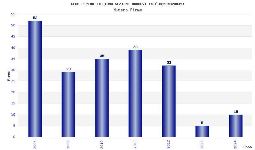| Anno | Firme | Importi | Media | Naz. | Reg. | Prov. | Comu. |