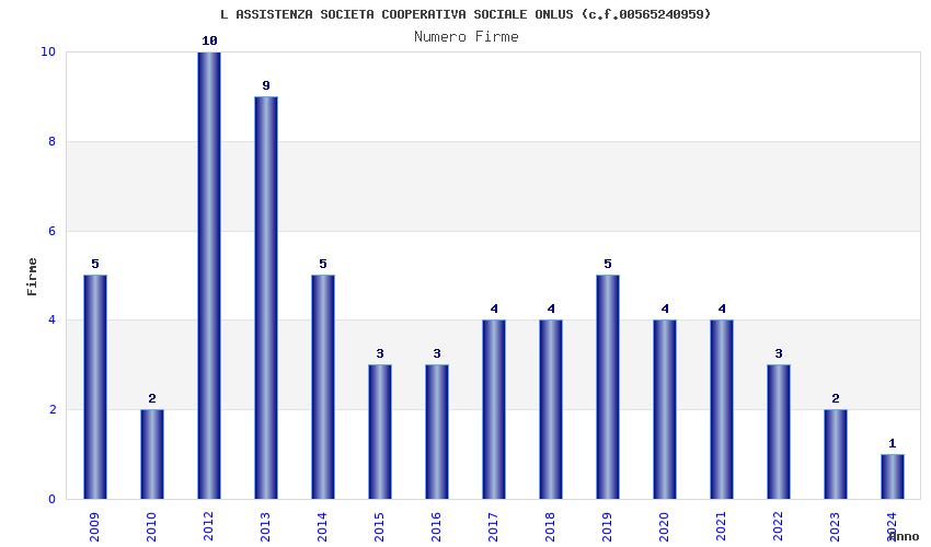 | Anno | Firme | Importi | Media | Naz. | Reg. | Prov. | Comu. |