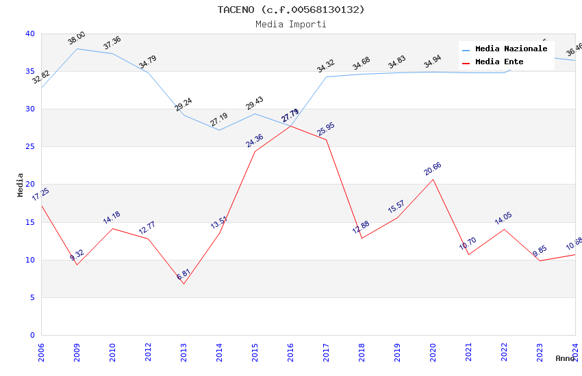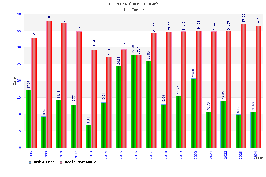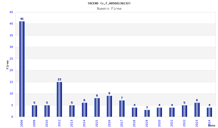 | Anno | Firme | Importi | Media | Naz. | Reg. | Prov. | Comu. |