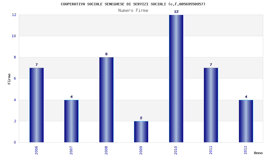 | Anno | Firme | Importi | Media | Naz. | Reg. | Prov. | Comu. |