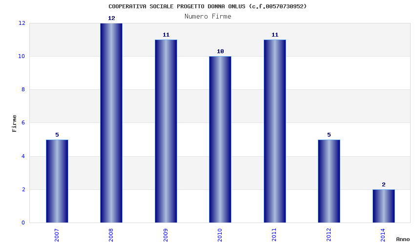 | Anno | Firme | Importi | Media | Naz. | Reg. | Prov. | Comu. |
