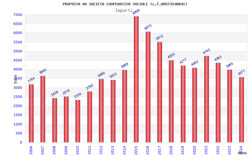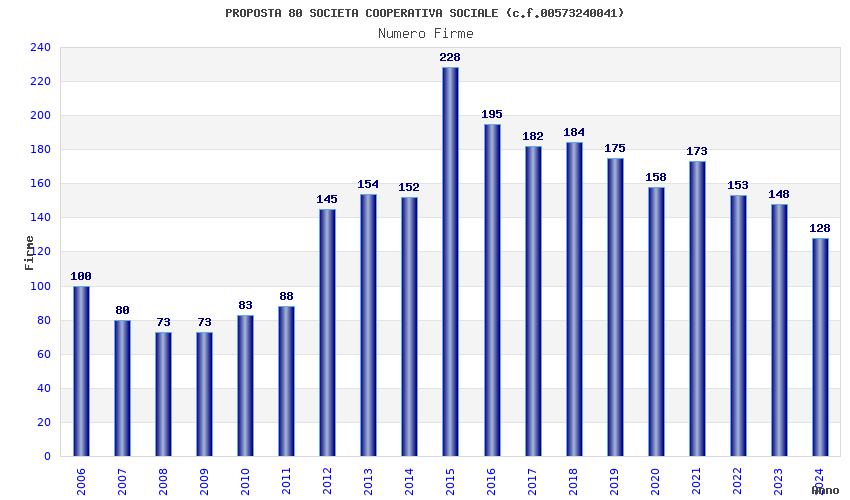 | Anno | Firme | Importi | Media | Naz. | Reg. | Prov. | Comu. |
