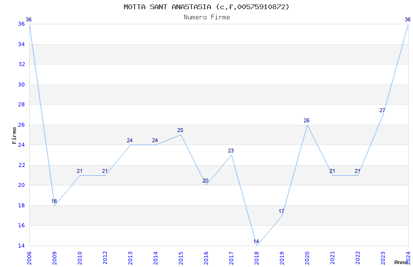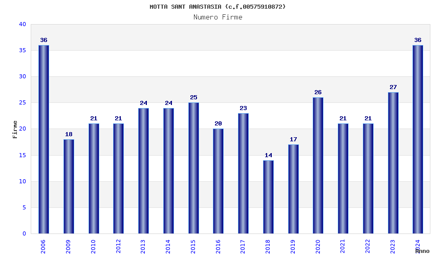 | Anno | Firme | Importi | Media | Naz. | Reg. | Prov. | Comu. |