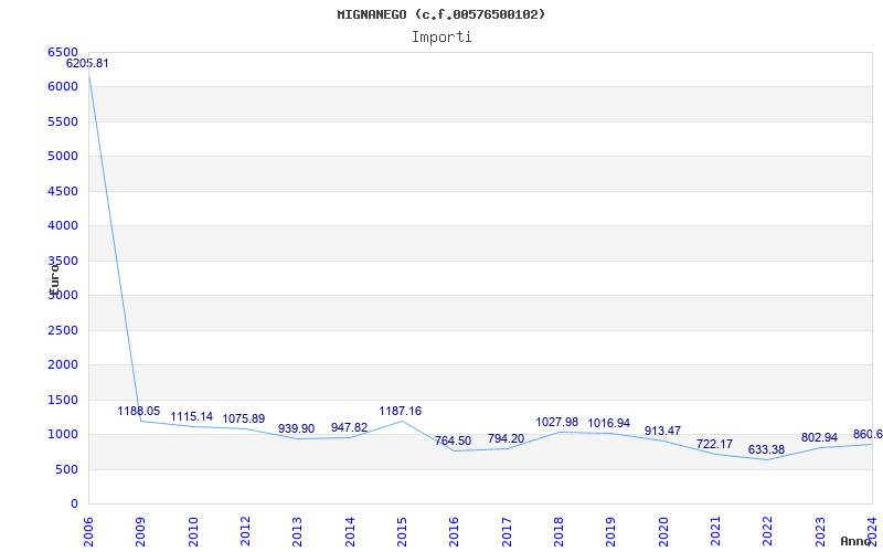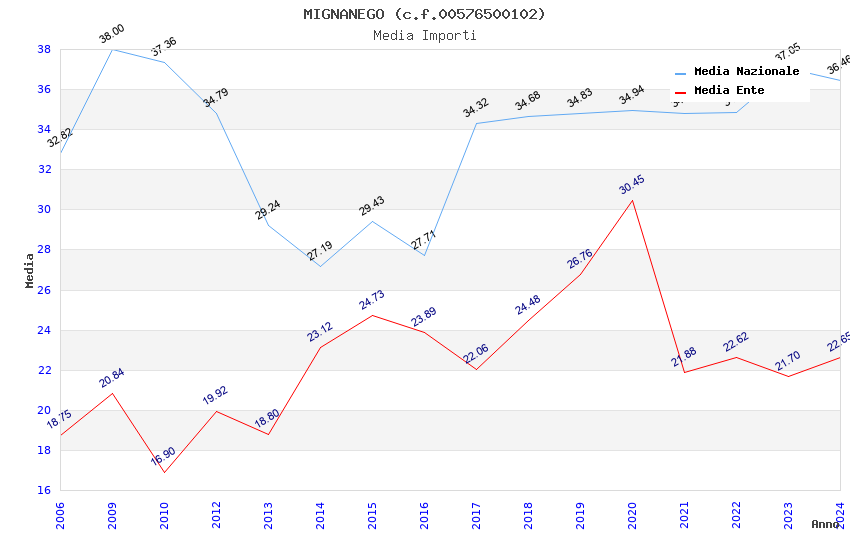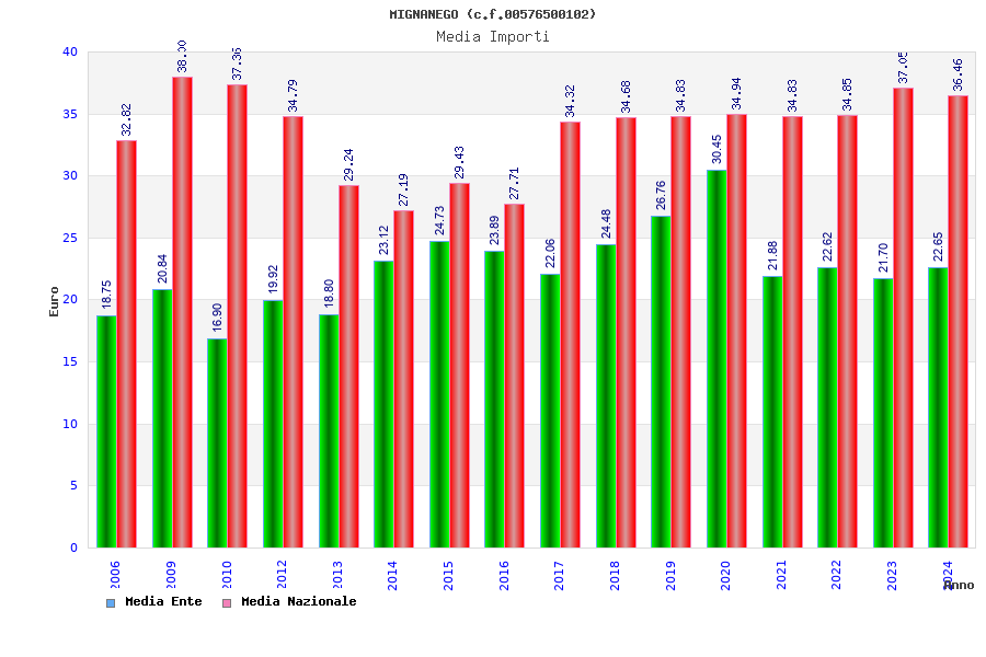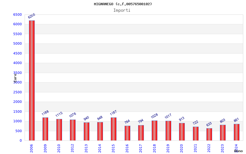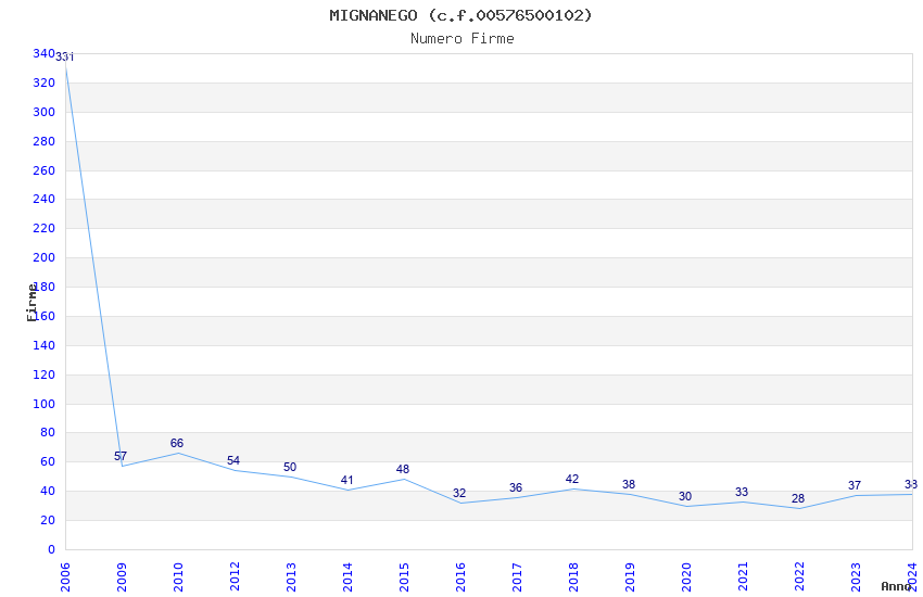 | Anno | Firme | Importi | Media | Naz. | Reg. | Prov. | Comu. |