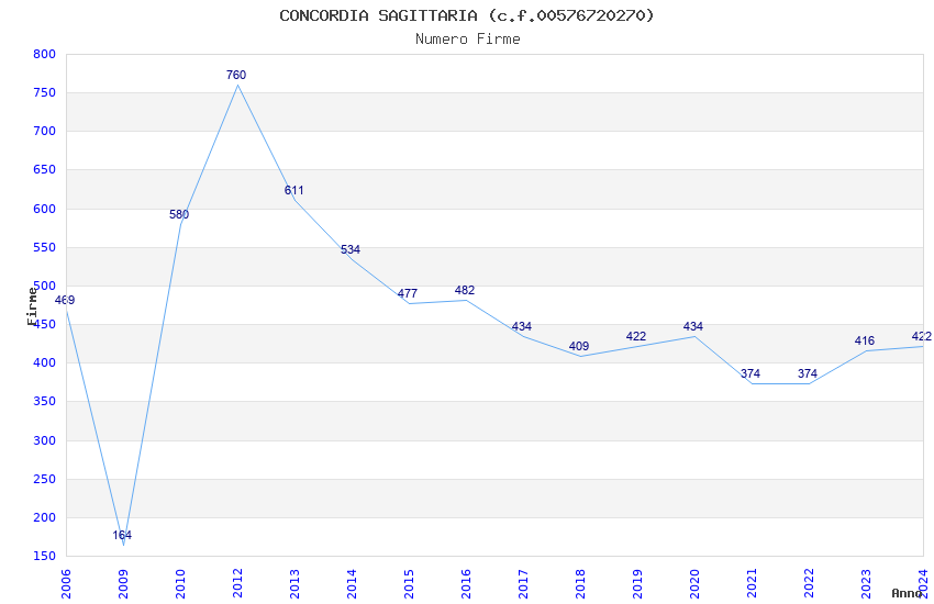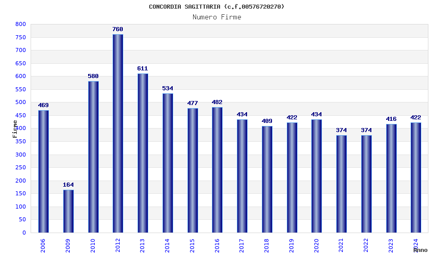 | Anno | Firme | Importi | Media | Naz. | Reg. | Prov. | Comu. |
