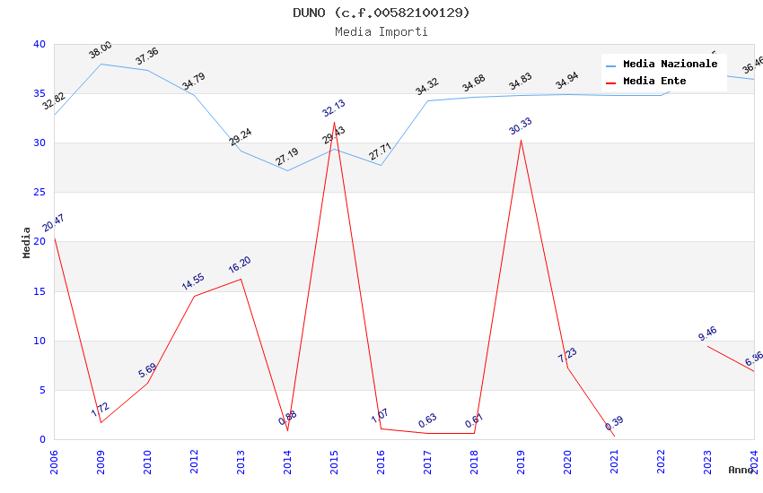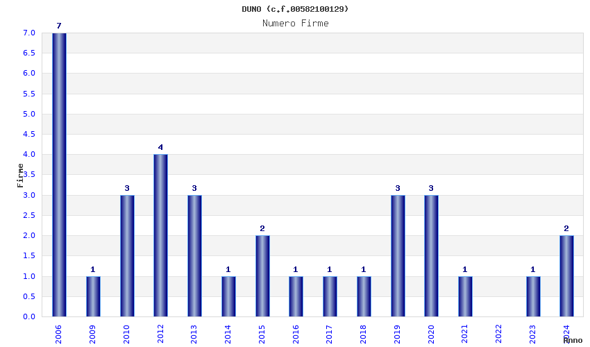 | Anno | Firme | Importi | Media | Naz. | Reg. | Prov. | Comu. |