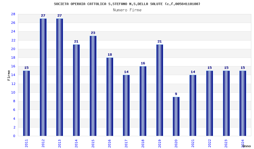 | Anno | Firme | Importi | Media | Naz. | Reg. | Prov. | Comu. |