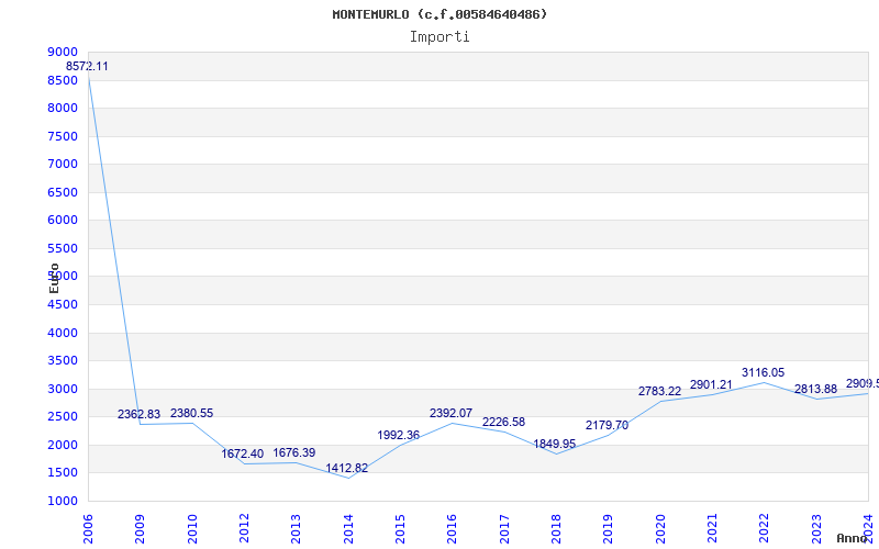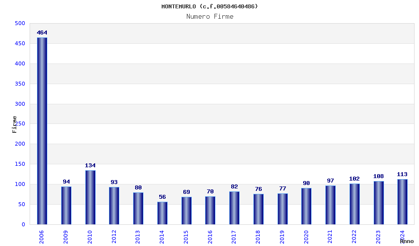 | Anno | Firme | Importi | Media | Naz. | Reg. | Prov. | Comu. |