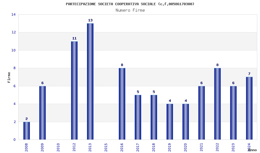 | Anno | Firme | Importi | Media | Naz. | Reg. | Prov. | Comu. |