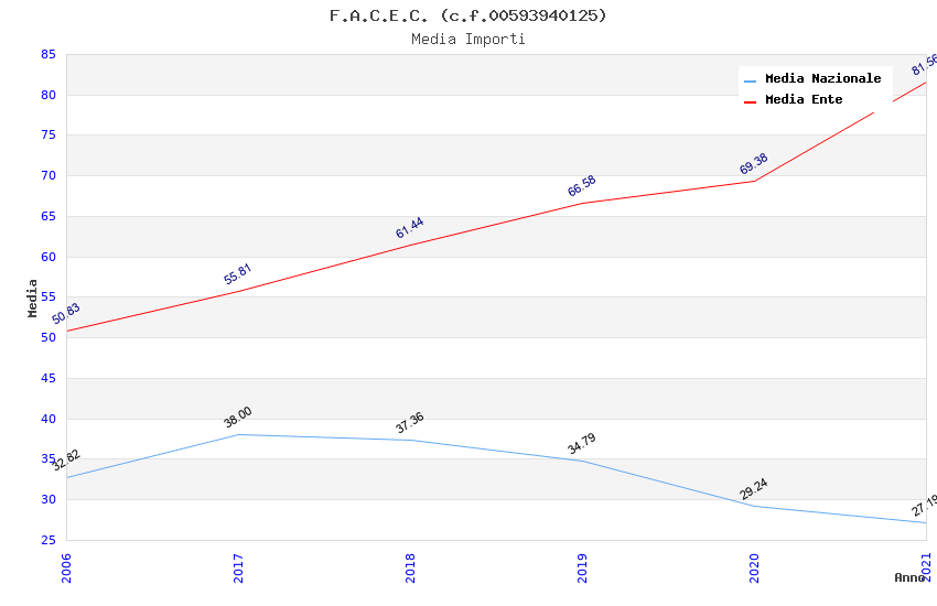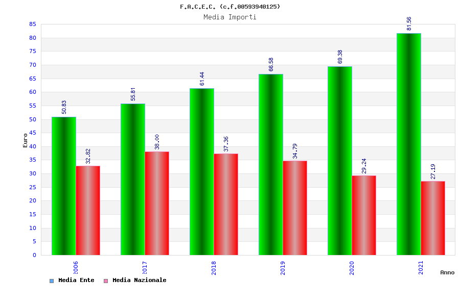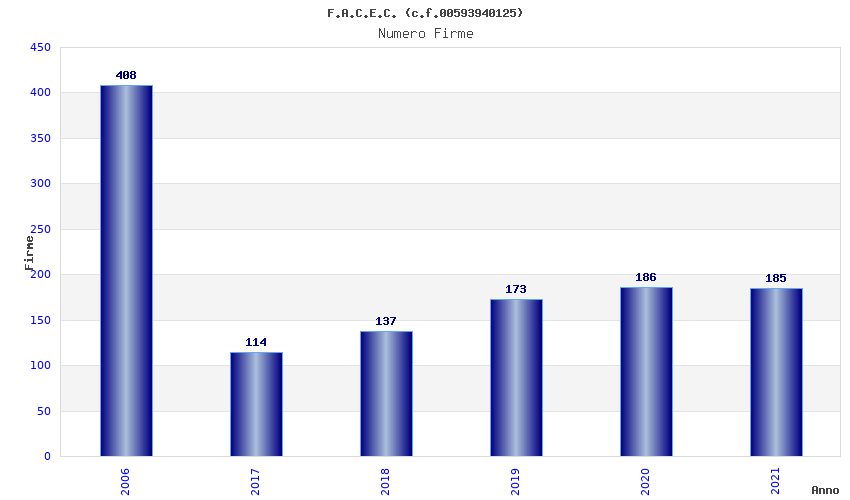 | Anno | Firme | Importi | Media | Naz. | Reg. | Prov. | Comu. |