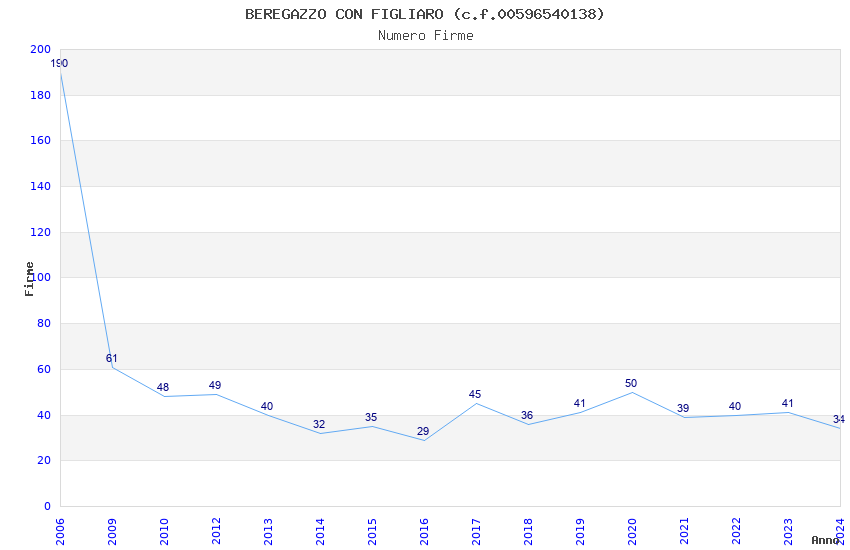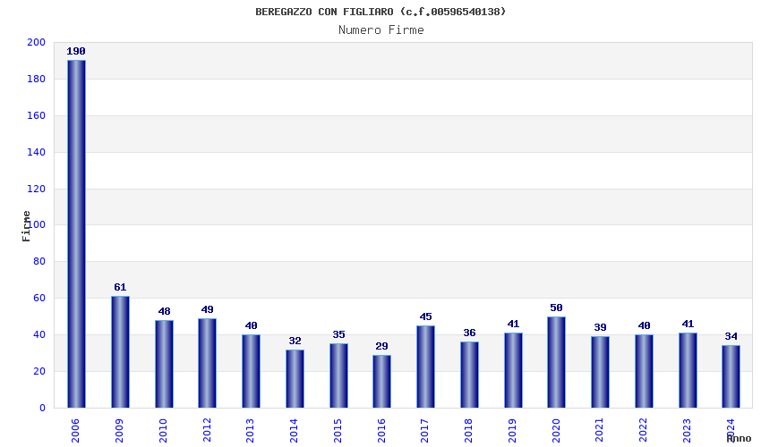 | Anno | Firme | Importi | Media | Naz. | Reg. | Prov. | Comu. |