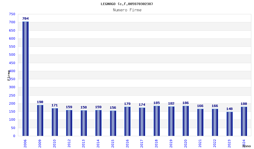 | Anno | Firme | Importi | Media | Naz. | Reg. | Prov. | Comu. |