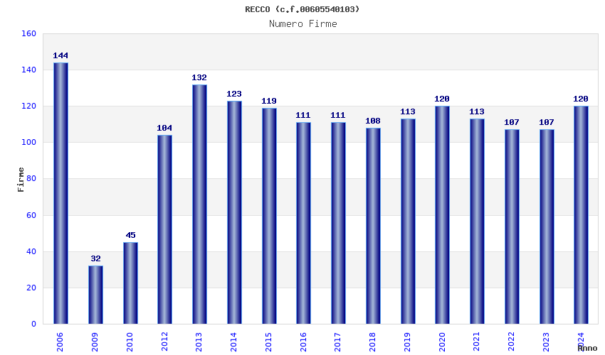 | Anno | Firme | Importi | Media | Naz. | Reg. | Prov. | Comu. |