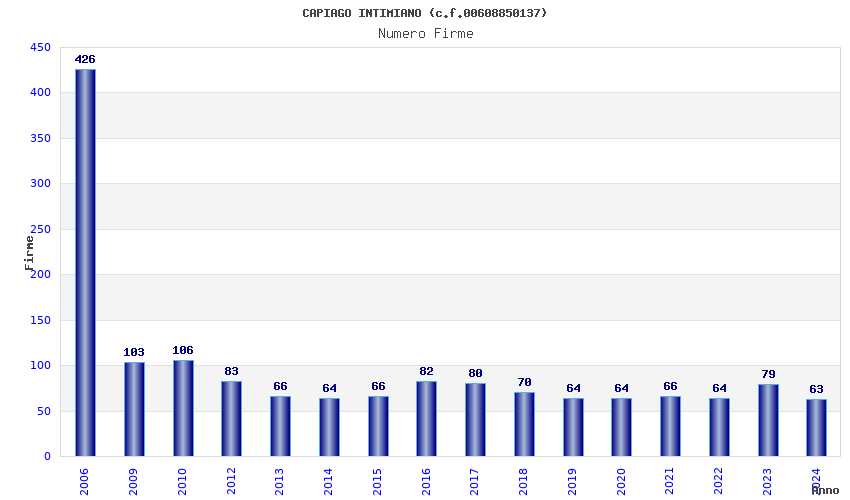 Anno Firme Importi Media Naz. Reg. Prov. Comu.