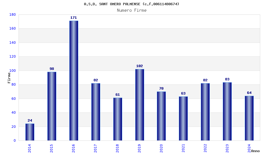 | Anno | Firme | Importi | Media | Naz. | Reg. | Prov. | Comu. |
