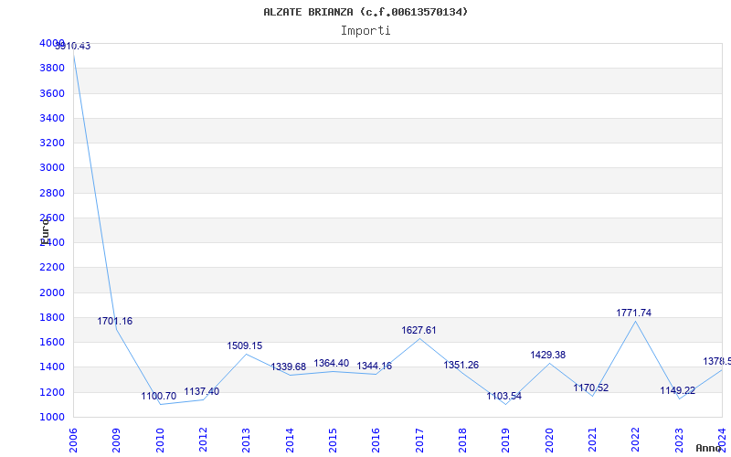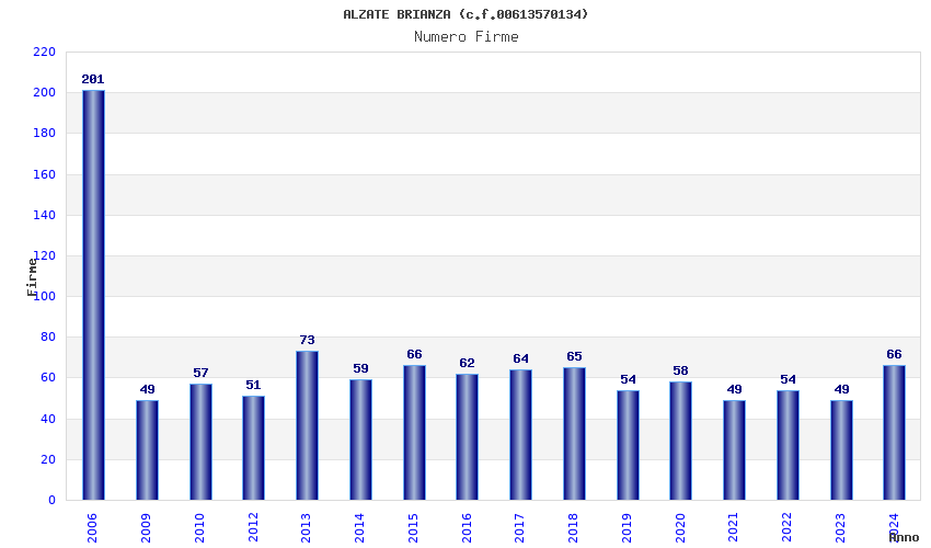 | Anno | Firme | Importi | Media | Naz. | Reg. | Prov. | Comu. |