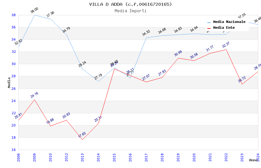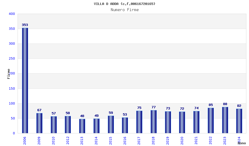 | Anno | Firme | Importi | Media | Naz. | Reg. | Prov. | Comu. |
