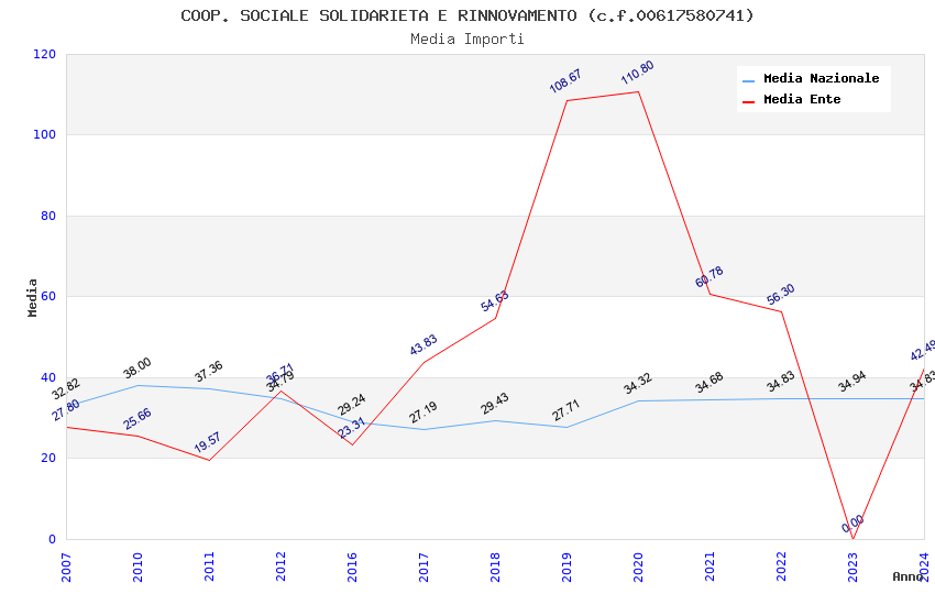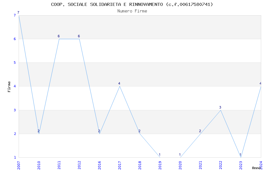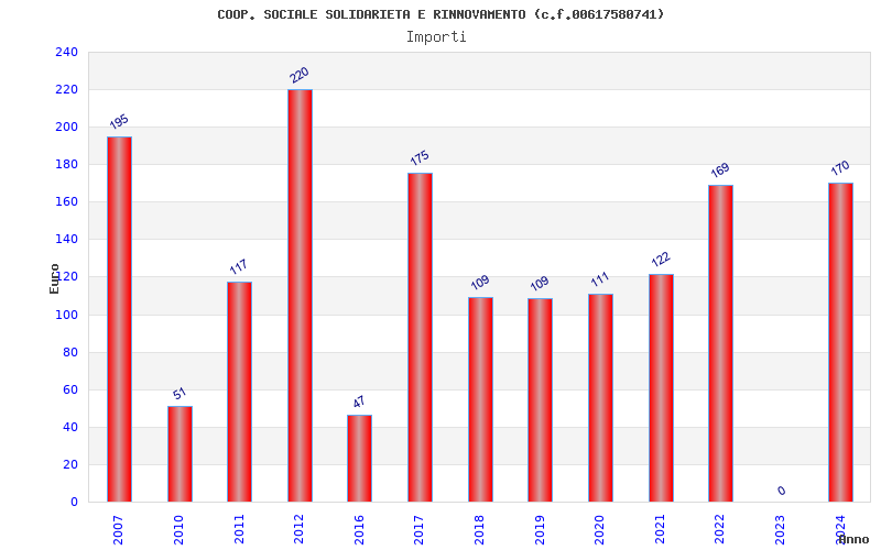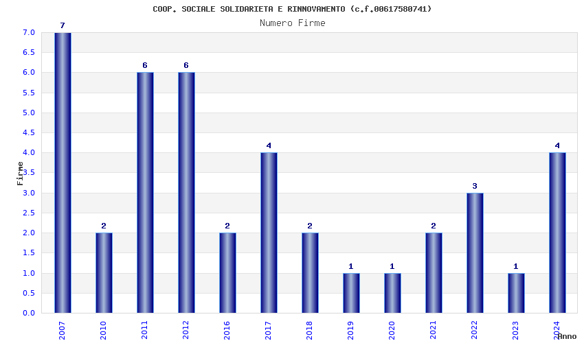 | Anno | Firme | Importi | Media | Naz. | Reg. | Prov. | Comu. |