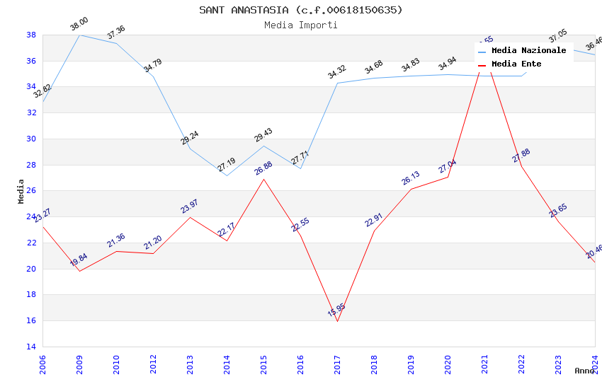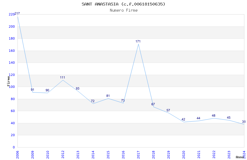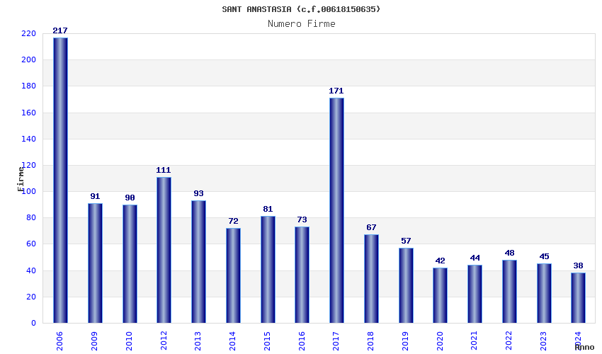 | Anno | Firme | Importi | Media | Naz. | Reg. | Prov. | Comu. |