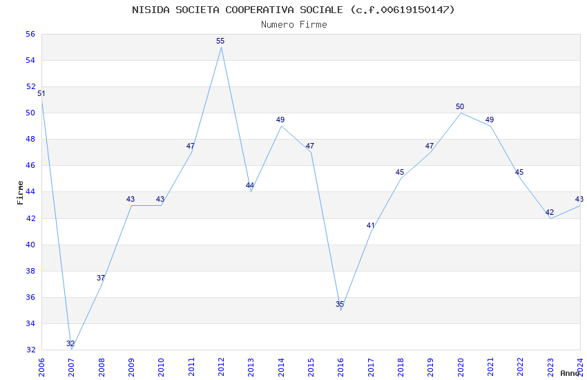 | 2024 | 43 | 1.410,20 | 32,80 | 30.644 | 6.319 | 133 | 10 |