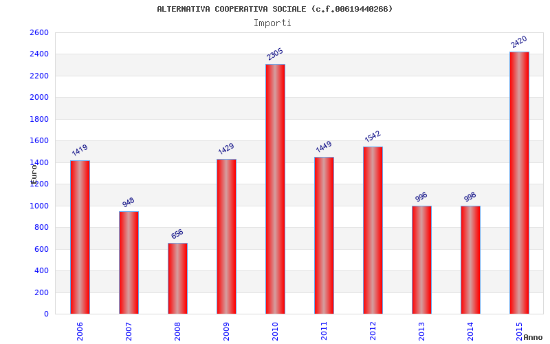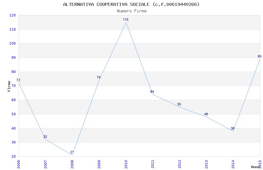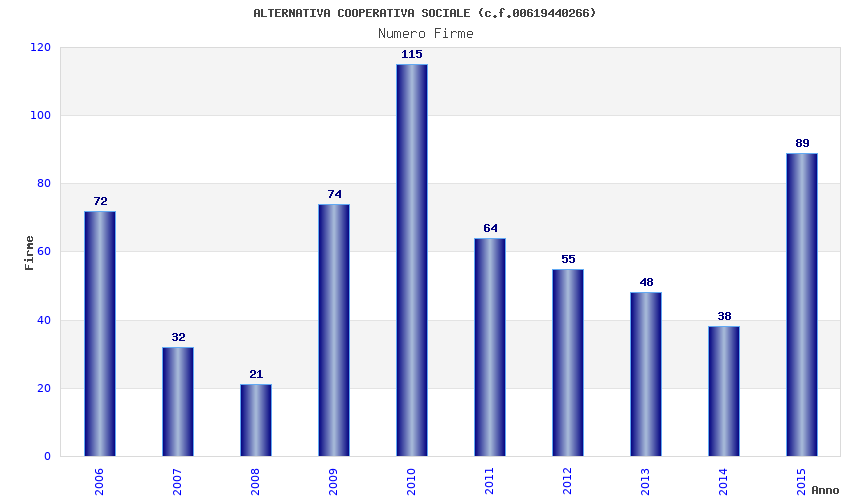 | Anno | Firme | Importi | Media | Naz. | Reg. | Prov. | Comu. |