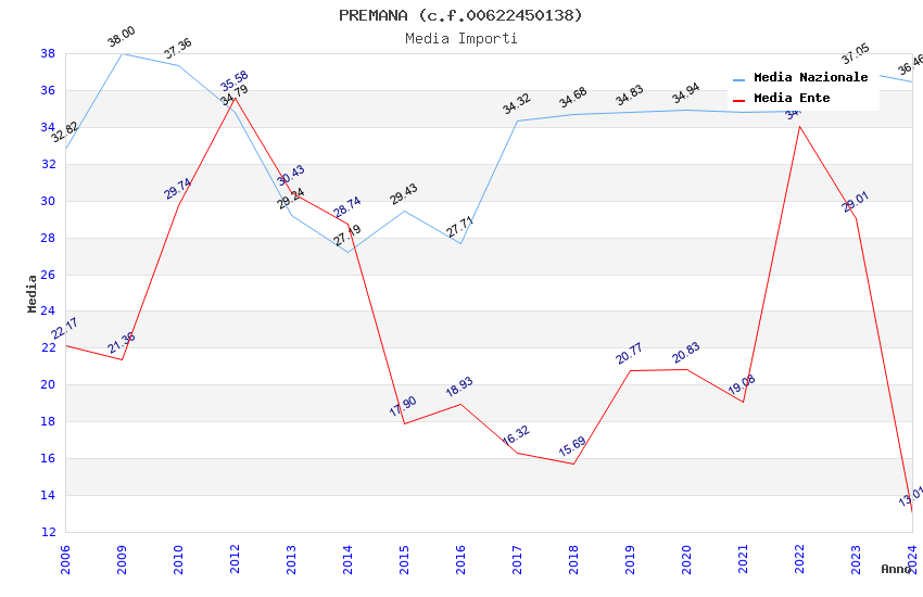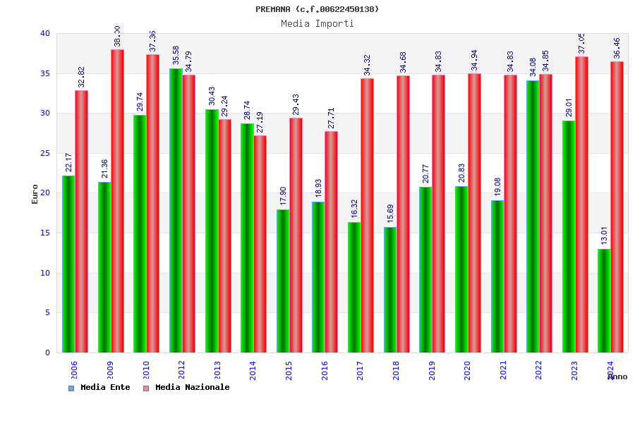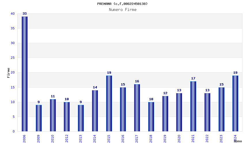 | Anno | Firme | Importi | Media | Naz. | Reg. | Prov. | Comu. |