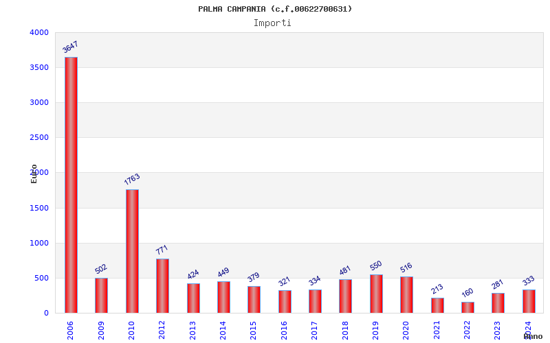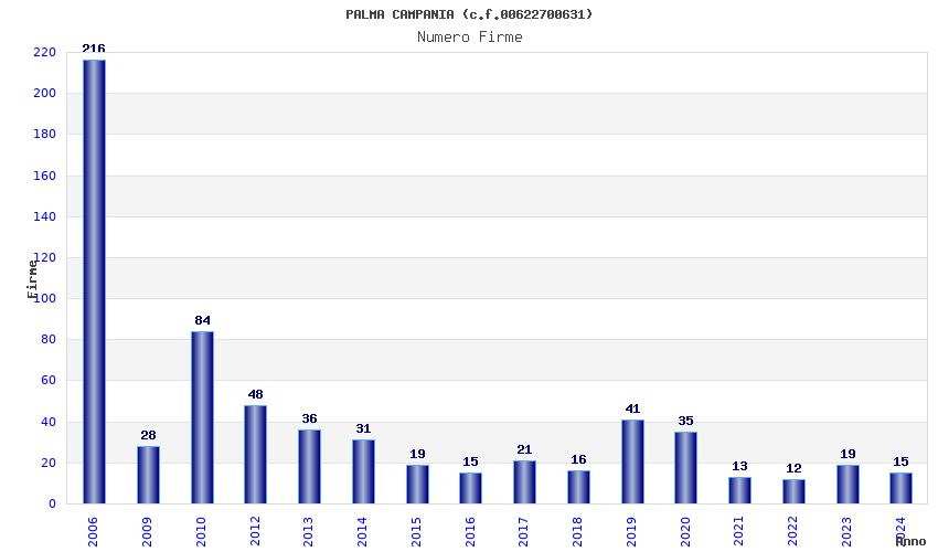 | Anno | Firme | Importi | Media | Naz. | Reg. | Prov. | Comu. |
