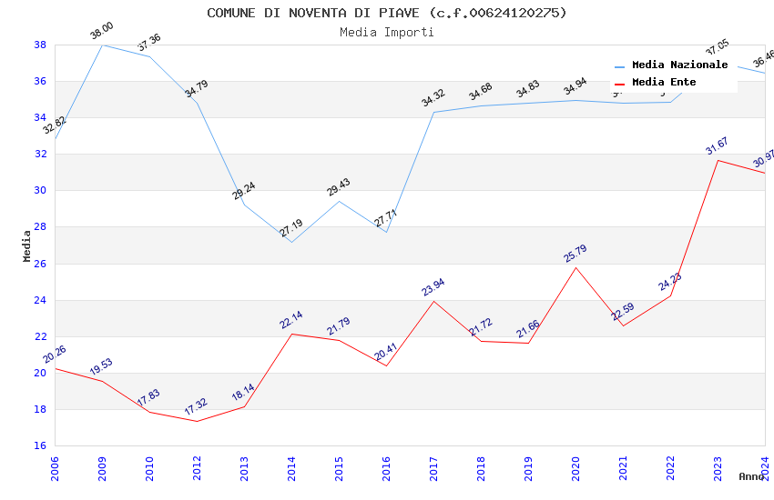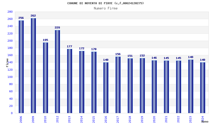 | Anno | Firme | Importi | Media | Naz. | Reg. | Prov. | Comu. |