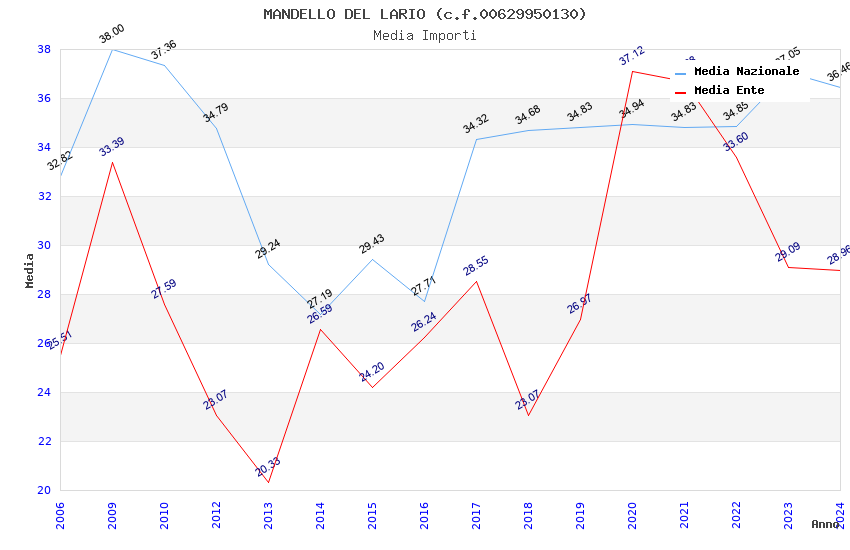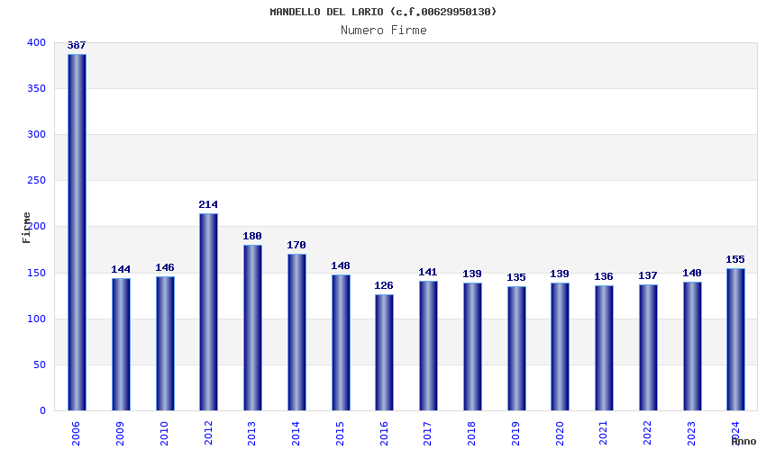 | Anno | Firme | Importi | Media | Naz. | Reg. | Prov. | Comu. |