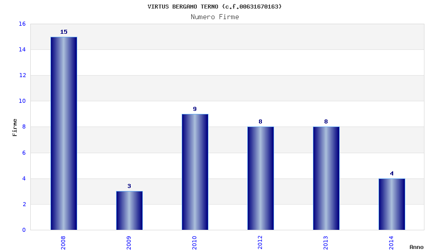 | Anno | Firme | Importi | Media | Naz. | Reg. | Prov. | Comu. |