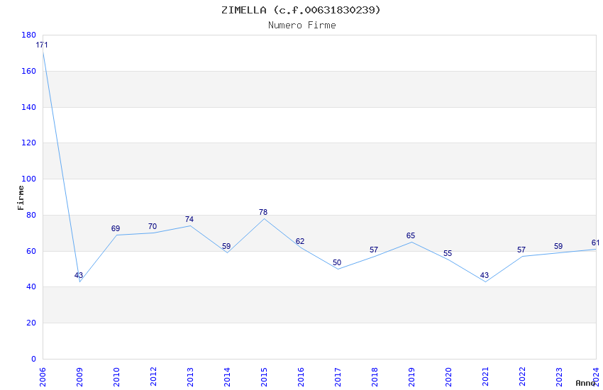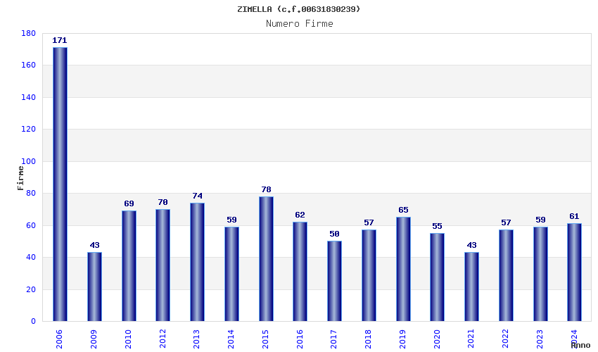 | Anno | Firme | Importi | Media | Naz. | Reg. | Prov. | Comu. |