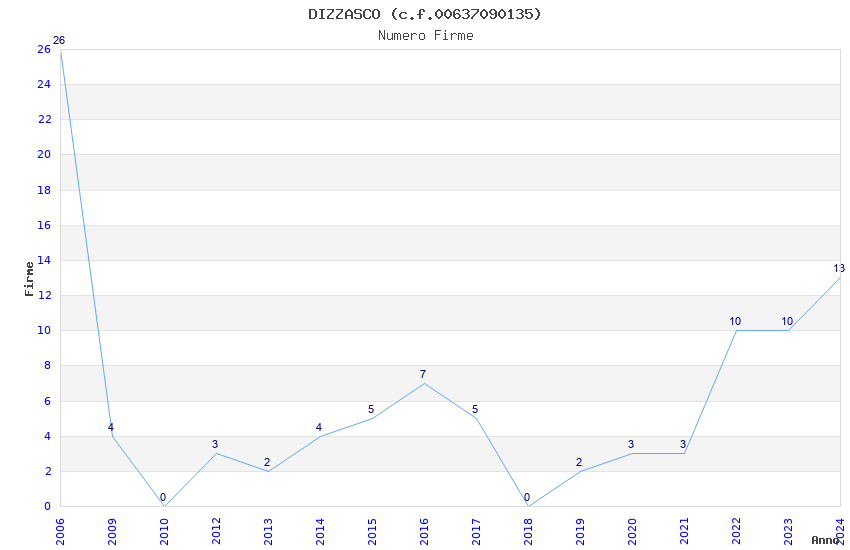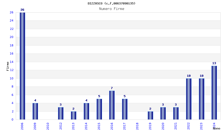 | Anno | Firme | Importi | Media | Naz. | Reg. | Prov. | Comu. |