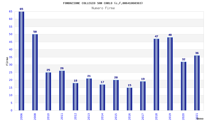 | Anno | Firme | Importi | Media | Naz. | Reg. | Prov. | Comu. |