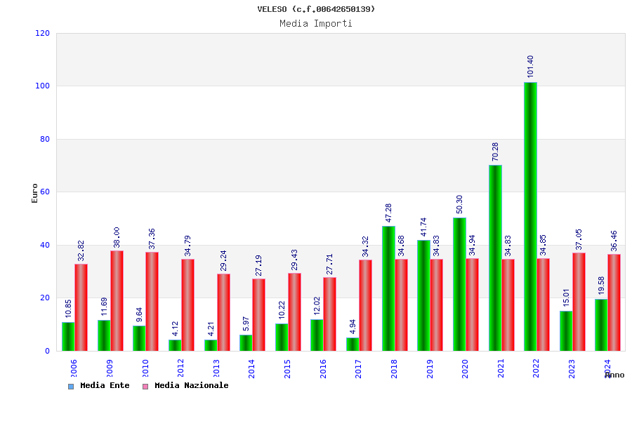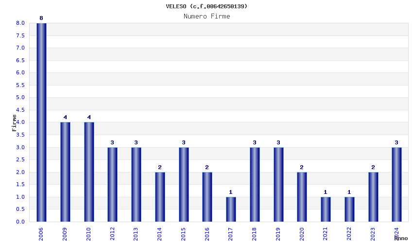 | Anno | Firme | Importi | Media | Naz. | Reg. | Prov. | Comu. |