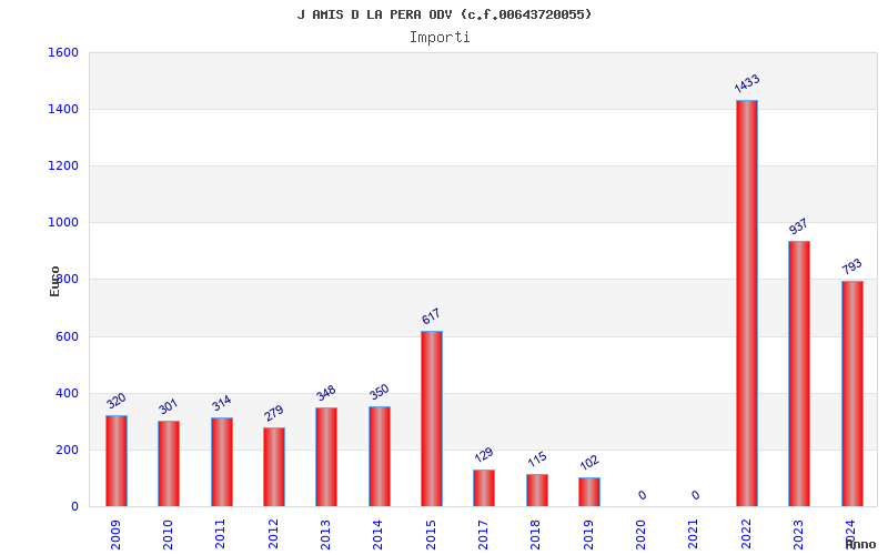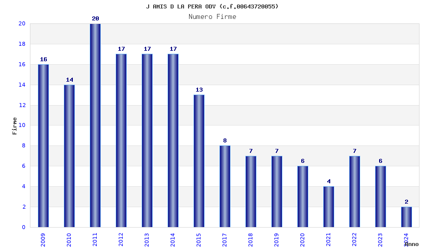 | Anno | Firme | Importi | Media | Naz. | Reg. | Prov. | Comu. |
