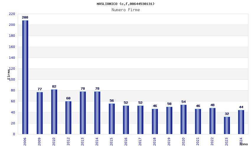 | Anno | Firme | Importi | Media | Naz. | Reg. | Prov. | Comu. |