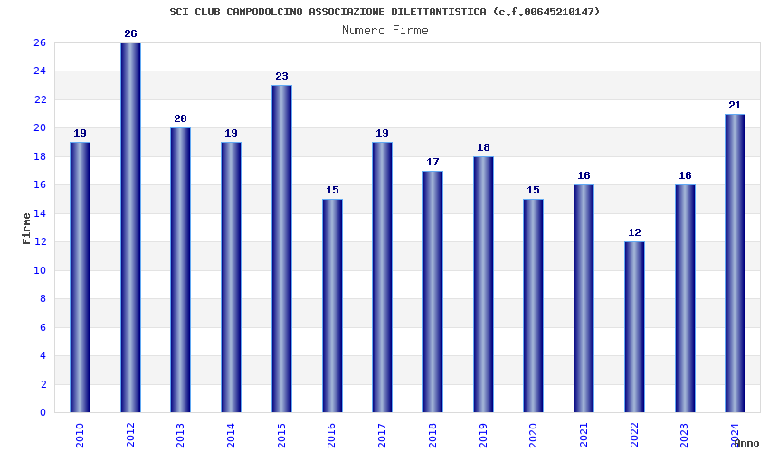 | Anno | Firme | Importi | Media | Naz. | Reg. | Prov. | Comu. |