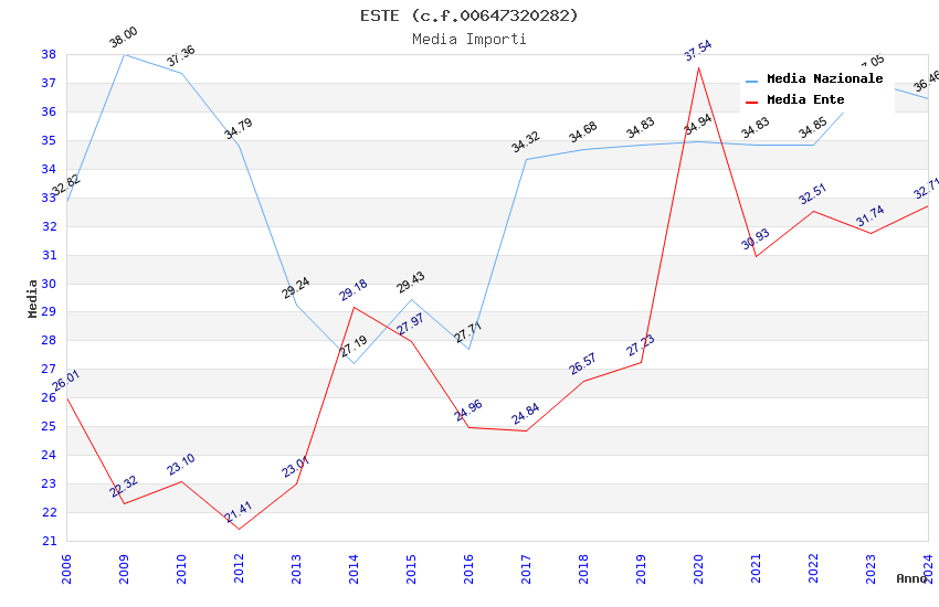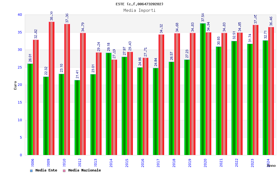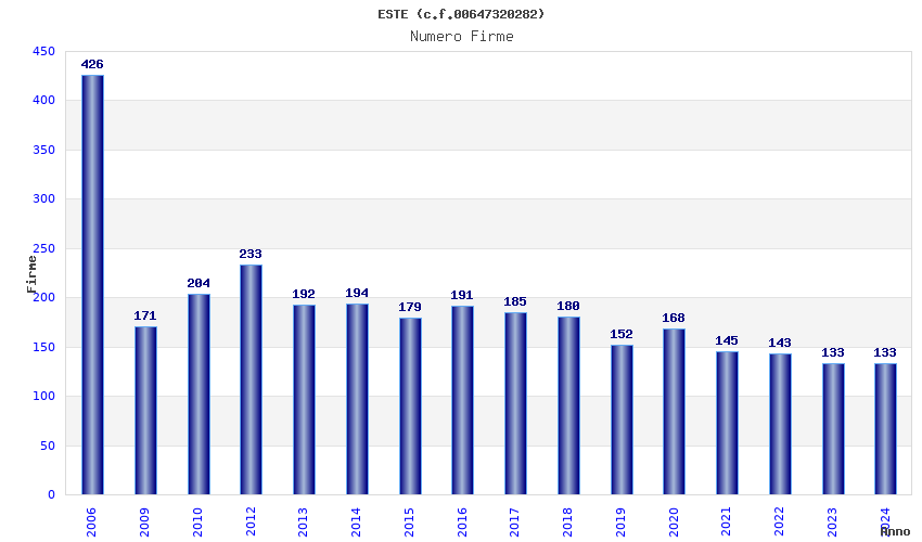 | Anno | Firme | Importi | Media | Naz. | Reg. | Prov. | Comu. |